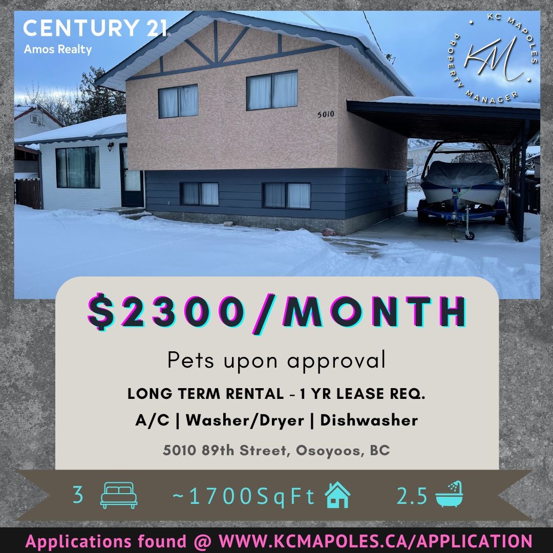 3 Bedroom Family Home on 89th Street, Osoyoos – Spacious Yard + Sunroom